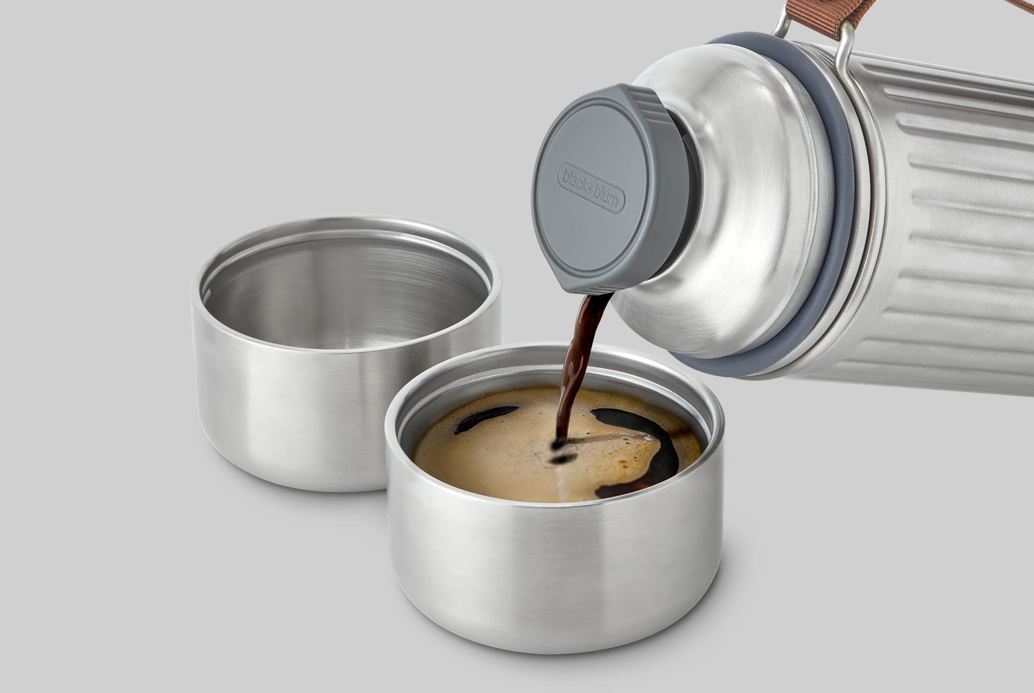 A flask often evokes images of adventure and a chance to savour a moment, perhaps atop a mountain on a chilly morning, warming up with a rich cup of coffee or a hearty soup. Our timeless design has a rugged, ribbed body and durable carry handle, all built to withstand the elements. With two cups, you and a friend can share the experience. Unlike most cups on the market, which are sometimes flimsy and have plastic interiors, our cups are crafted from durable, double-walled stainless steel. This helps insulate both the drink inside and your hands from the heat on the outside. The wide, stable shape makes them perfect for sipping, plus the broader base ensures they remain steady on rough surfaces.