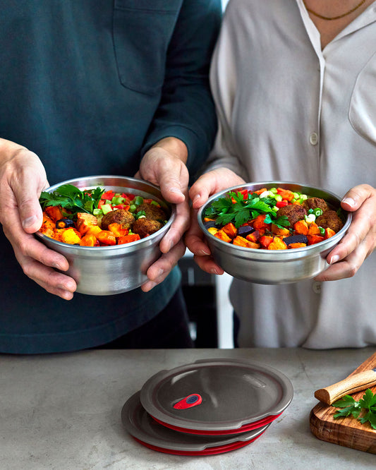 Regular price From £44.95Regular priceUnit price / perSale price From £44.95Set of 3 stainless steel, leak proof, stackable and microwave-safe meal-prep bowls