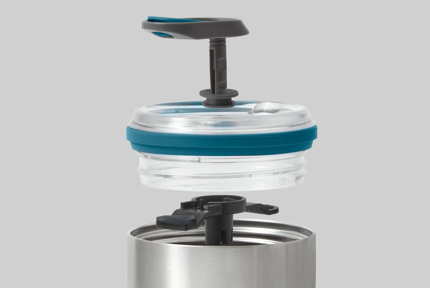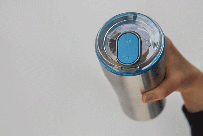 Our lid is easy to open by rotating the puck and can be locked to make sure it won't open in your bag. It gives a reassuring 'click' when you open and close it.