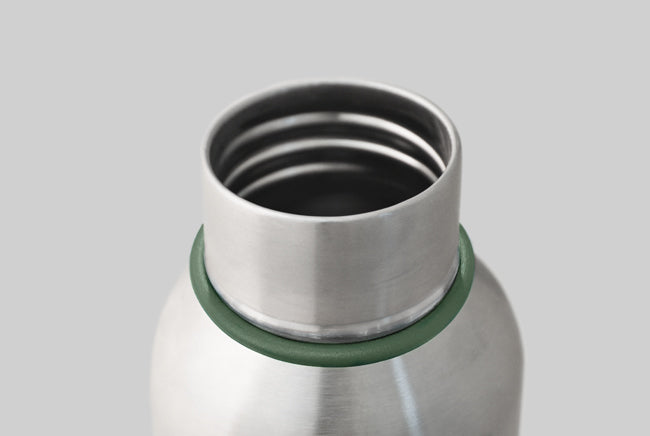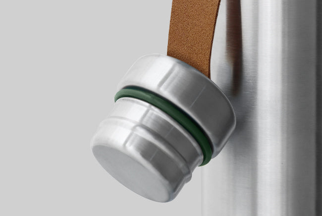 There are lots of water bottles on the market, but many look the same and rely on fashion-led colour and pattern/graphics to give them appeal. We wanted to create a design that was more unique and timeless. The simple brushed stainless steel form contrasted by the faux leather strap gives it a modern retro appeal. Any scratches or dents will only add to its charm as it ages. We’ve added only a hint of colour in the silicone seal and ring which holds the strap to ensure the focus is on the materials. This bottle has a utilitarian appeal, designed to be used every day in any environment.