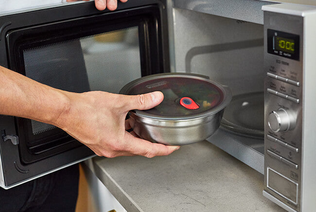 Yes, you read that right. These bowls have been designed using 18/8 stainless steel which, in combination with a smooth and rounded surface, means they are microwave-safe.