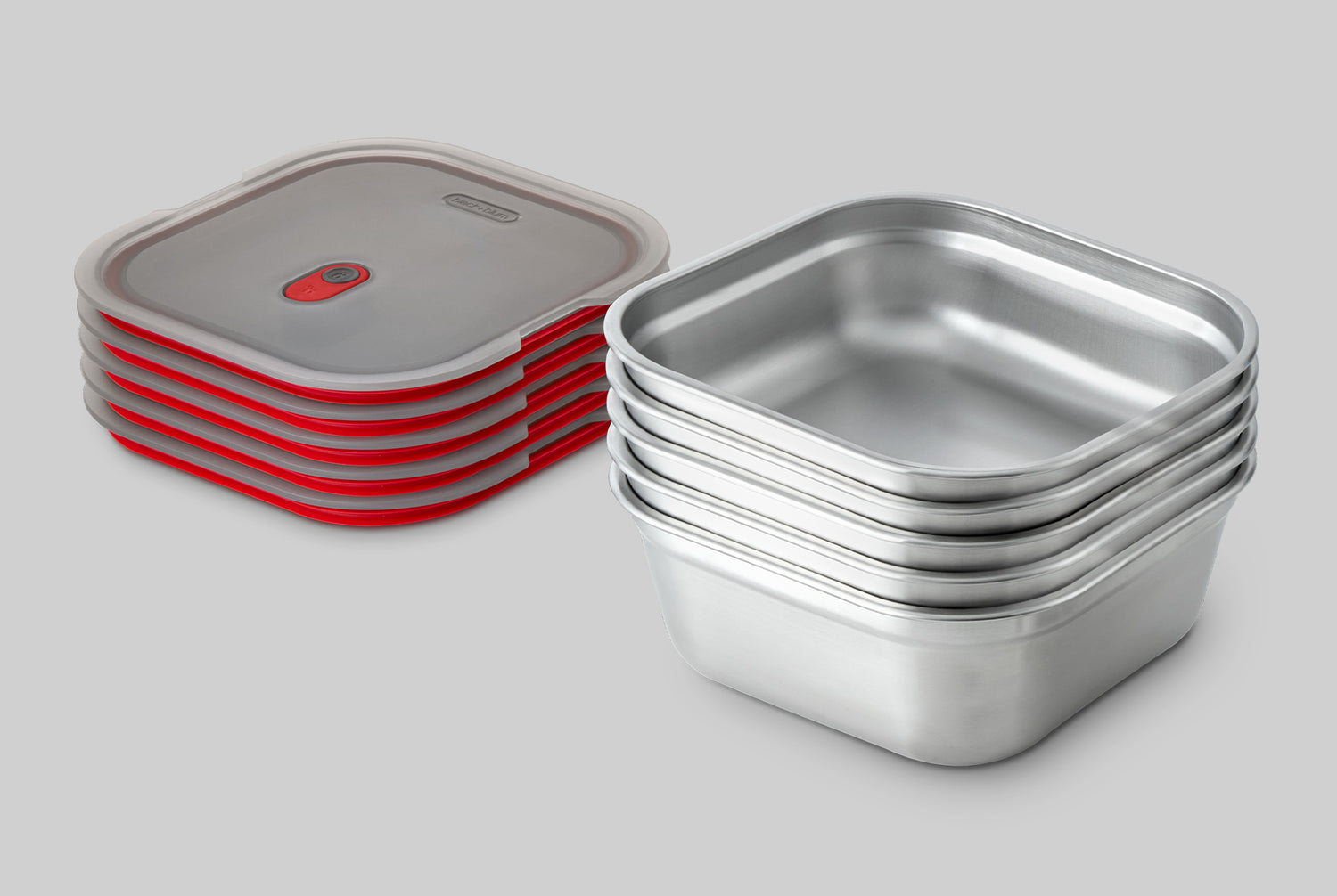We launched our first lunch box design in 2010 and this helped inspire and ignite the whole marketplace for food on-the-go. This has led to a growing trend in meal-prep and batch cooking with people following a certain diet for health or fitness, trying to live more sustainably or simply saving money. From a design standpoint, we saw this as a great opportunity to create a range of food containers with different volumes and shapes to suit the individual user and food type. We wanted the design to be simple and minimal; stripped back to the bare essentials. The stainless steel base is surprisingly light but durable and innovative in relation to being microwave/oven/freezer-safe and easy to open with the vacuum release button.